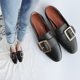 2017春季新款方扣单鞋女平底百搭深口圆头牛皮欧美英伦乐福鞋低跟