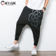 威士意派九分裤国风男春夏哈伦裤男士休闲裤刺绣宽松男裤子潮男装