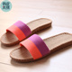 俏皮米琪春夏女款纯色时尚情侣室内厚底防滑居家居耐磨亚麻拖鞋