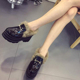 2017新款韩版中跟粗跟单鞋女春英伦复古乐福鞋方头绒面百搭女鞋子