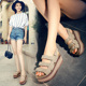 2017夏季新款厚底松糕凉鞋女百搭真皮魔术贴坡跟增高平底罗马凉鞋