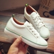 彦溪2016舒适真皮小白鞋女夏季系带平底单鞋百搭休闲鞋女学生