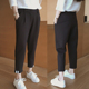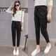 春装新款学生韩版休闲裤卷边哈伦裤九分裤女装大码黑色裤子西装裤