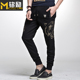 铭励2016春季新款时尚潮男卫裤韩版修身收口潮裤子男个性花运动裤