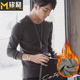 铭励男士加绒加厚长袖t恤圆领修身纯色打底衫男装体恤保暖上衣潮