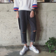 春季原宿风韩国膝盖破洞牛仔裤男士宽松九分裤权志龙直筒裤子男潮