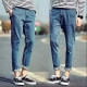 日系复古韩国原色浅蓝色牛仔裤男 韩国男生九分裤男宽松简约潮牌