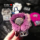 新冬季款蒙奇奇獭兔毛汽车挂件车挂水钻镶钻水晶挂饰女士闪钻毛球