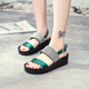 2017新款松糕底欧洲站夏季厚底一字扣带凉鞋女露趾时尚罗马女鞋
