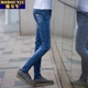 魔斗牛2017春夏新款男士小脚牛仔裤 浅蓝色修身弹力洗水长裤子潮