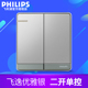 飞利浦开关插座双开单控86型双联触控面板飞逸银色2开单控家用