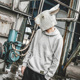 LMTNZD秋季原创日系复古做旧灰色连帽卫衣美式休闲宽松套头外套男