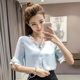 天天特价v领喇叭袖衬衫女宽松开叉短袖雪纺衫上衣百搭时尚打底衫
