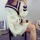 海军风韩版宽松v领套头大毛衣裙女秋冬外套线衣服中长款针织衫潮