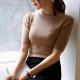 秋冬新品韩版显气质半高圆领长袖打底针织衫修身显瘦套头女士毛衣
