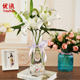 时尚透明玻璃台面花瓶 百合花插简约创意花瓶居家装饰摆设