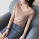 现货清仓 短款 t恤女 春装新款韩版V领纯色修身性感 打底衫 上衣