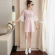网纱拼接t恤裙女夏2017新学生粉色t恤裙女夏刺绣字母七分袖连衣裙