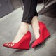 2017春秋季新品孕妇结婚鞋坡跟单鞋高跟内增高女鞋婚礼红色新娘鞋