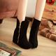 秋冬新款圆头高跟粗跟拉链短靴单靴大码40 41 42 43码马丁靴女鞋