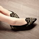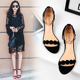 尖头浅口高跟鞋女2017春季欧美新款真皮镂空单鞋女细跟一字带女鞋