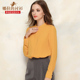 娜拉的衬衫女春装新款长袖韩范显瘦学生V领撞色宽松大码雪纺衫B88