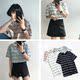 2017夏季百搭基础款宽松经典条纹圆领套头短袖学生T恤打底衫上衣