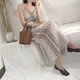 NA AN2017夏季新款zhuan气质v领收腰显瘦露背吊带裙格子连衣裙