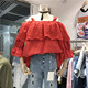 NA AN2017春夏新款o时尚露肩镂空蕾丝荷叶边上衣女纯色宽松娃娃衫