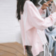七格格 2017春装新款 不规则开衩宽松纯色长袖圆领T恤女