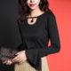 七格格 2017春装新款 喇叭袖撞色拼接修身长袖针织打底衫T恤女