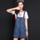 ANN 2016秋新款iFashion 单排扣门襟水洗减龄背带牛仔裤女