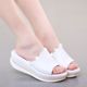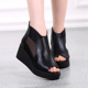 夏季休闲凉鞋真皮拖鞋鱼嘴凉拖坡跟厚底真皮女鞋一字拖高跟沙滩鞋