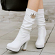 2016新款加绒秋冬季时尚性感白色防水台高跟中筒靴韩版粗跟女靴子