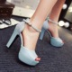 2017夏季新款防水台高跟凉鞋 女甜美网纱韩版鱼嘴凉鞋 女粗跟鞋子
