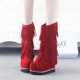 冬超高跟鞋14cm高夜店防水台坡跟流苏靴中筒靴春秋天女靴长靴子红