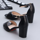 夏季新款纯色一字扣带女罗马绕带粗跟露趾低跟时尚露趾韩版凉鞋女