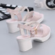 女夏休闲欧美舒适高跟鞋水钻凉鞋鱼嘴防水台 罗马款搭扣中空女鞋