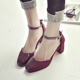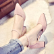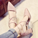 17春新款浅口单鞋尖头高跟鞋镂空绑带粗跟鞋时装工作鞋一字扣中空