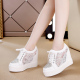 2016夏镂空高帮鞋内增高松榚厚底网纱雷丝休闲粉白旅游女鞋大码鞋