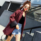2017春装新款韩版复古中长款西服宽松显瘦条纹无扣长袖西装外套女