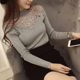 春纯秋冬打底衫珠子刺绣嘴唇针织衫长袖半高领保暖修身套头毛衣女