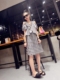 欧洲站大眼睛2017春季新款飞飞袖漏肩拼接黑白格中长款连衣裙女