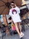 欧洲站大眼睛2017夏季新款时尚字母图案喇叭袖中长款短袖T恤衫 女