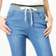 女式松紧腰牛仔裤女小脚裤中腰铅笔裤修身显瘦弹力小脚学生长裤潮