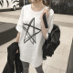 春夏季韩版印花大码打底衫女半袖宽松体恤裙中长款纯棉短袖t恤潮