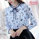 碎花衬衫女长袖2017春季新款韩版宽松大码蝴蝶结衬衣打底衫雪纺衫