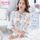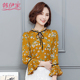 雪纺衫女春装新款小清新蝴蝶结系带碎花衬衫大码宽松长袖印花上衣