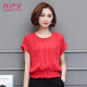 雪纺衫女短袖2017夏装新款大码宽松蝙蝠袖上衣圆领显瘦打底衬衫夏