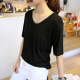 夏装韩版纯色莫代尔V领短袖T恤女宽松简约半袖大码学生体恤上衣